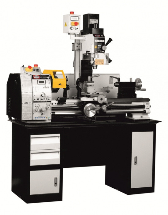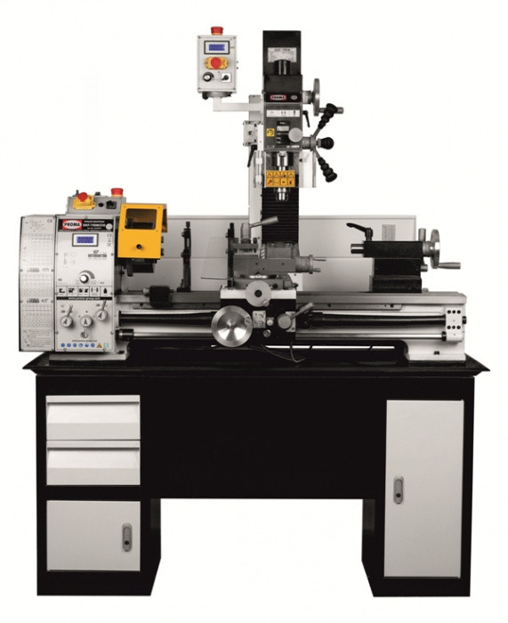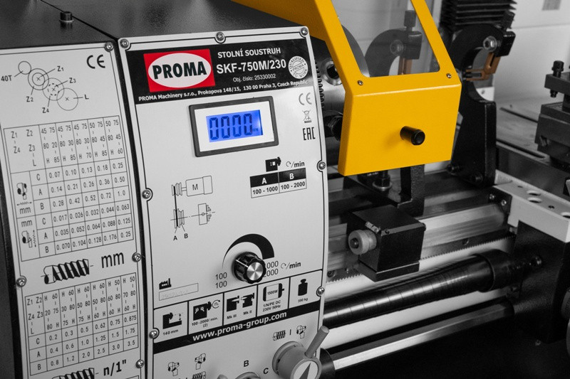 Kombinovaný soustruh PROMA SKF-750M se řadí mezi profesionální skupiny strojů, které jsou učeny pro náročné dílny, zámečnictví a školy. Díky robustnímu loži a celkové hmotnosti 532 kg nabízí excelentní přesnost. Tento typ stroje je standardně vybaven jak vodicím a tažným vřetenem pro řezání závitů, automatickým podélným a příčným posuvem, tak i natáčecí frézovací hlavou. Díky této kombinaci umožňuje kombi soustruh provádět vrtací, frézovací a soustružnické práce v malých prostorech dílen.