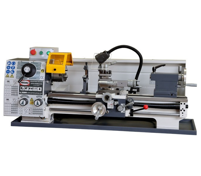 Soustruh PROMA SPB-650MG/230 se řadí mezi profesionální skupiny strojů, které jsou učeny pro náročné dílny, zámečnictví a školy. Díky robustnímu loži a celkové hmotnosti 250 kg nabízí excelentní přesnost. Tento typ stroje je standardně vybaven jak vodicím a tažným vřetenem pro řezání závitů, tak i automatickým podélným a příčným posuvem.