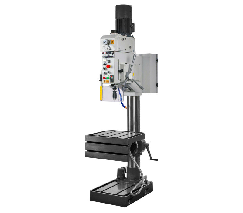 Tato robustní převodová sloupová vrtačka s dvoustupňovou převodovkou řízenou frekvenčním měničem nabízí profesionální výkon s vysokou přesností a velikosti vrtání otvorů do 40 mm a je ideální volbou pro řemeslnou výrobu a zámečnické dílny, kde využijí úhlový stůl, automatický posuv vřetene a variabilní převodovku pro rychlou změnu otáček frekvenčním měničem v základní výbavě.