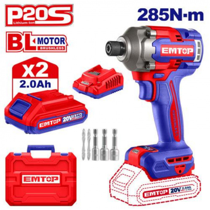 Aku rázový utahovák 20V 285Nm 1/4" 2x2.0Ah