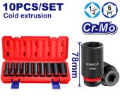 Sada 10 ks prodloužených rázových nástrčných hlavic 1/2" L-78 mm