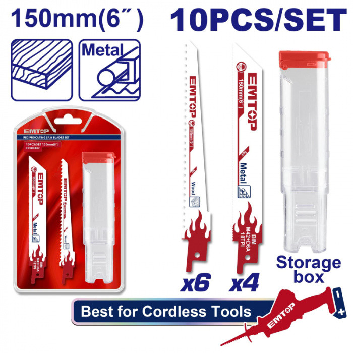 Sada 10ks pilových listů pro pilu ocasku 150mm na dřevo, kov, plast