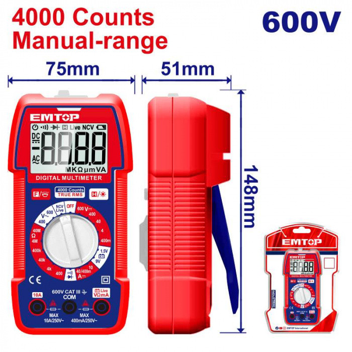 | Stejnosměrné napětí | 400mV/4V/40V/600V |