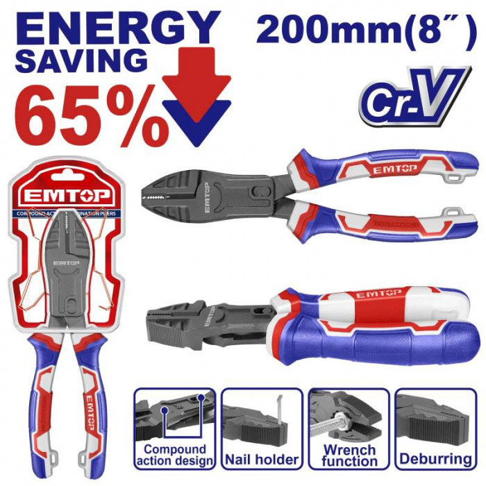 Kleště kombinované převodové 200 mm (úspora síly 65%)