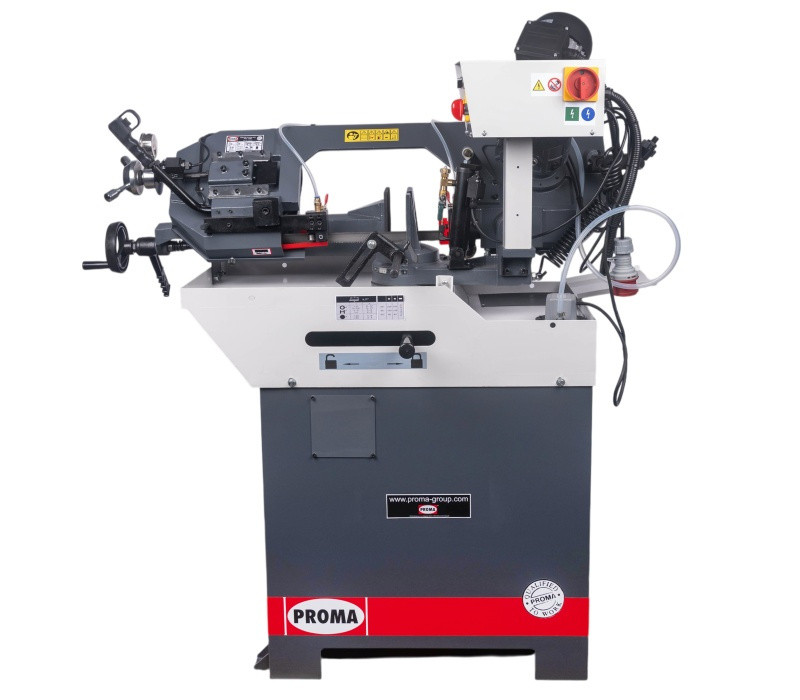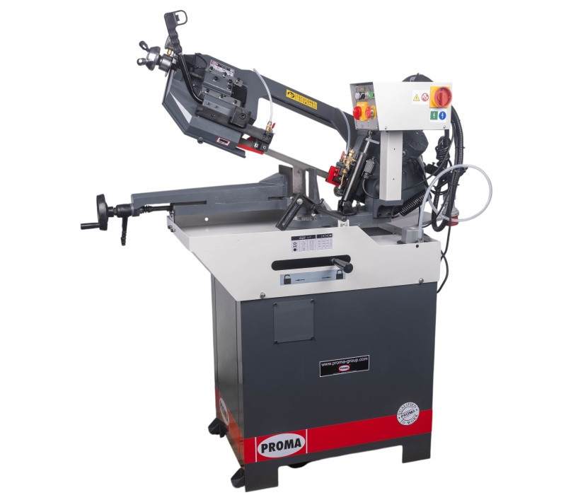 PPS-220H je cenově výhodná pásová pila na kov s délkou pásu 2460 mm a s optimálním řezným výkonem. Díky snadné obsluze, hydraulickému a chladícímu zařízení je vhodná zejména pro časté dělení materiálu pod úhly v údržbářských a obráběcích dílnách nebo tam, kde se hodí oboustranné úhlování svěráku - 45° až 60°.