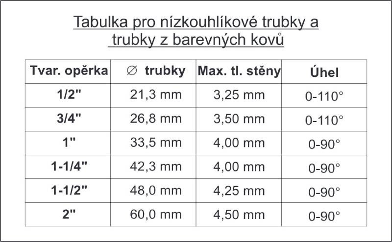 - Pro nízkouhlíkové ocelové či nerezové trubky